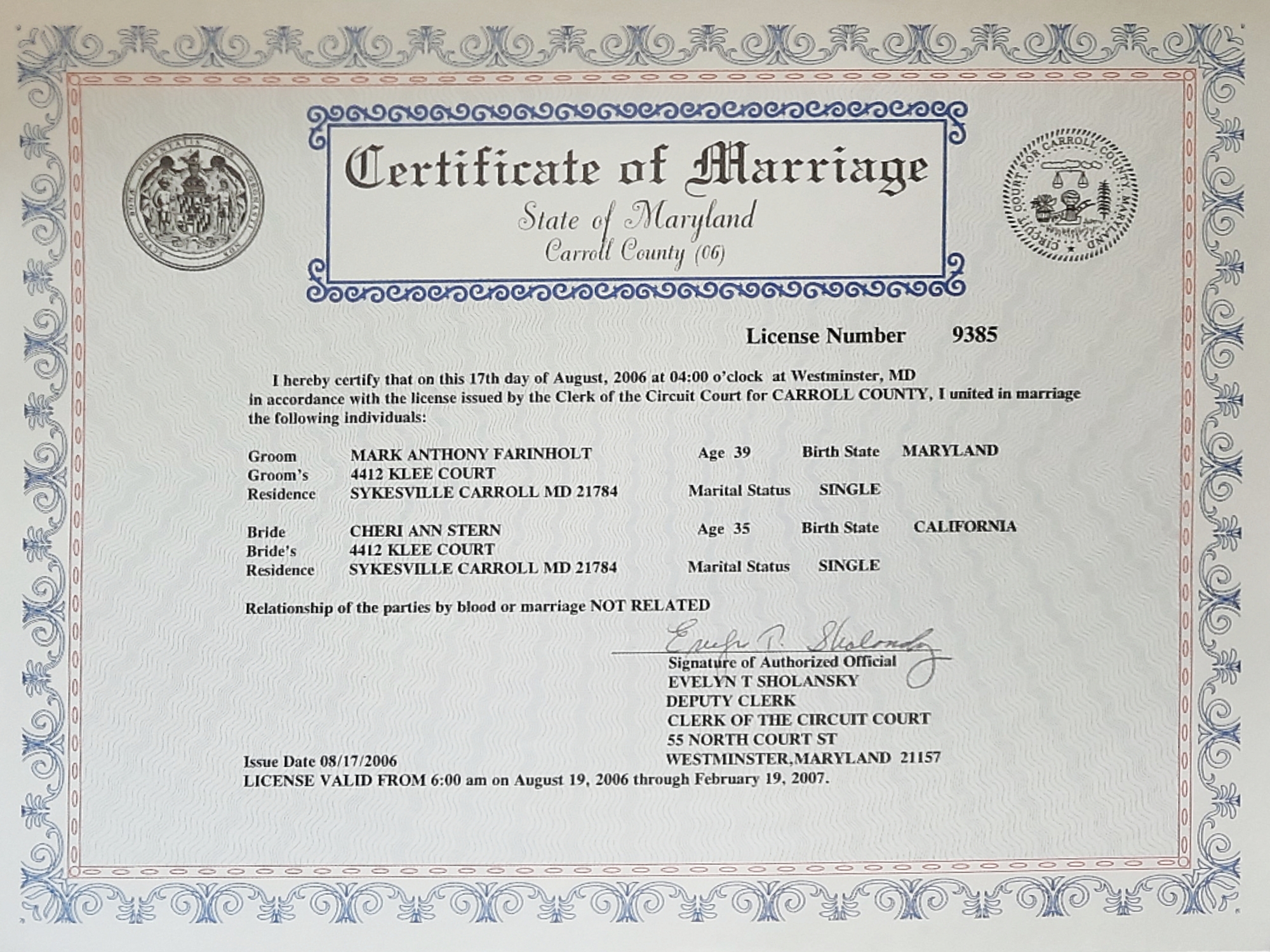 I explained to the Social Security Administration that Jennifer Stern and I had different last names. I showed them my Social Security Card that they had issued me in 2006. My marriage certificate and license. And my MVA ID card. I also explained that Jennifer Stern had never lived in Frederick, Maryland.