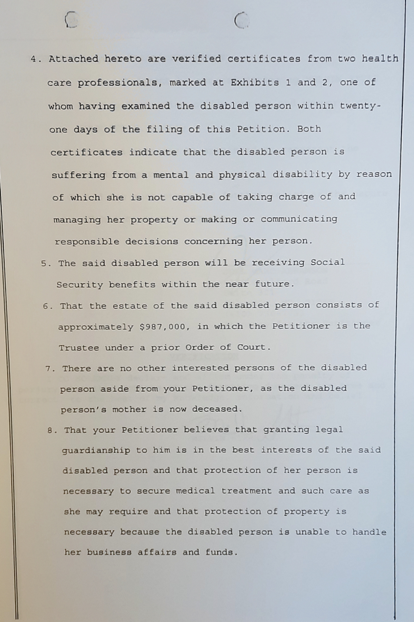 The courts had granted Mel guardianship of Jennifer Stern’s person and property as far back as 2001. If not further. With the trust that Mel would make the right decisions in regard to Jennifer.