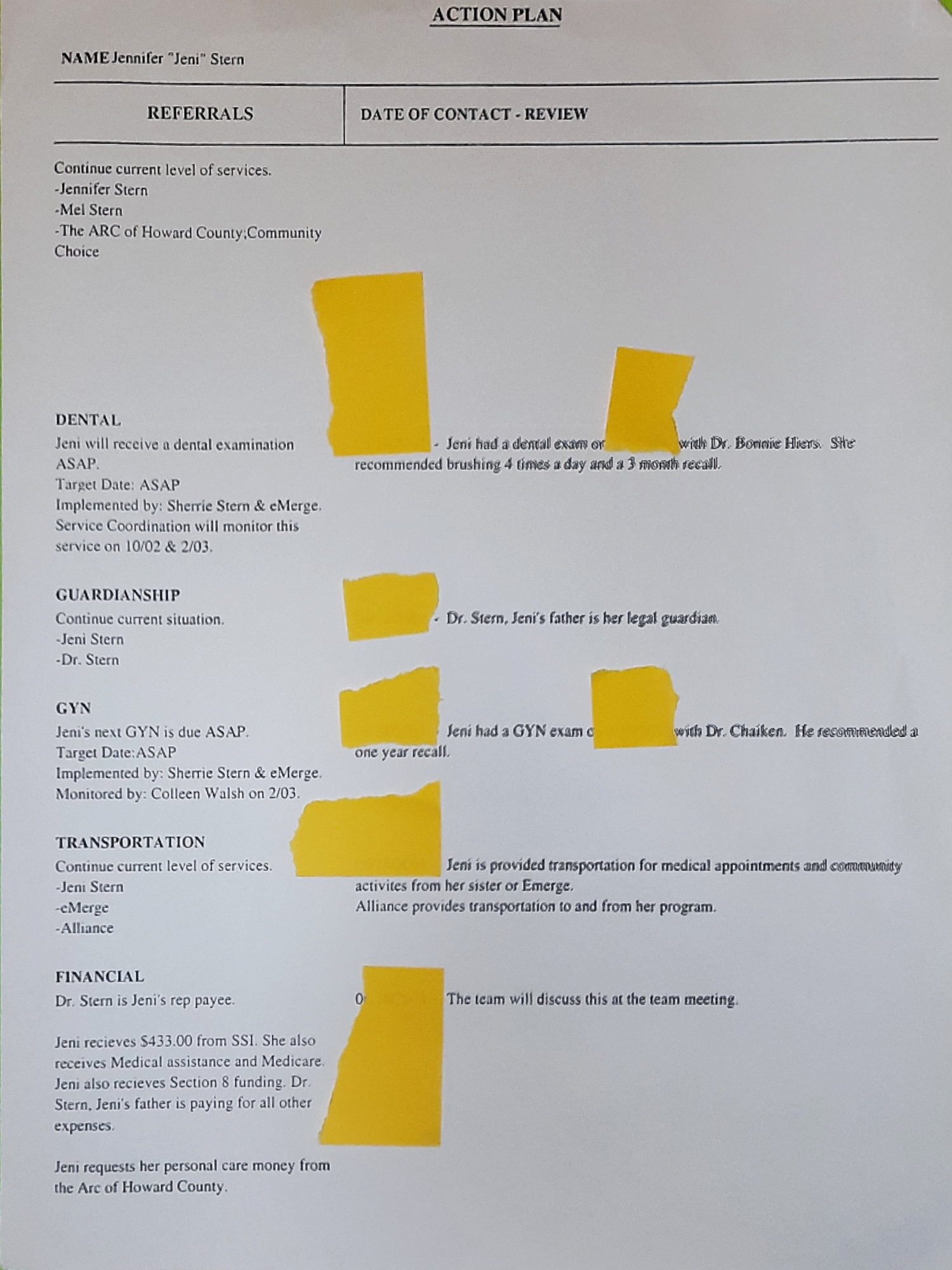 For 9-10 months my family not only suffered by not being able to reach all the financial help that should have been available to us. But, Jennifer Stern suffered as well. She was not receiving her Social Security Disability checks. And her guardian and father wasn’t notifying the Social Security Administration, with concern, as to why.