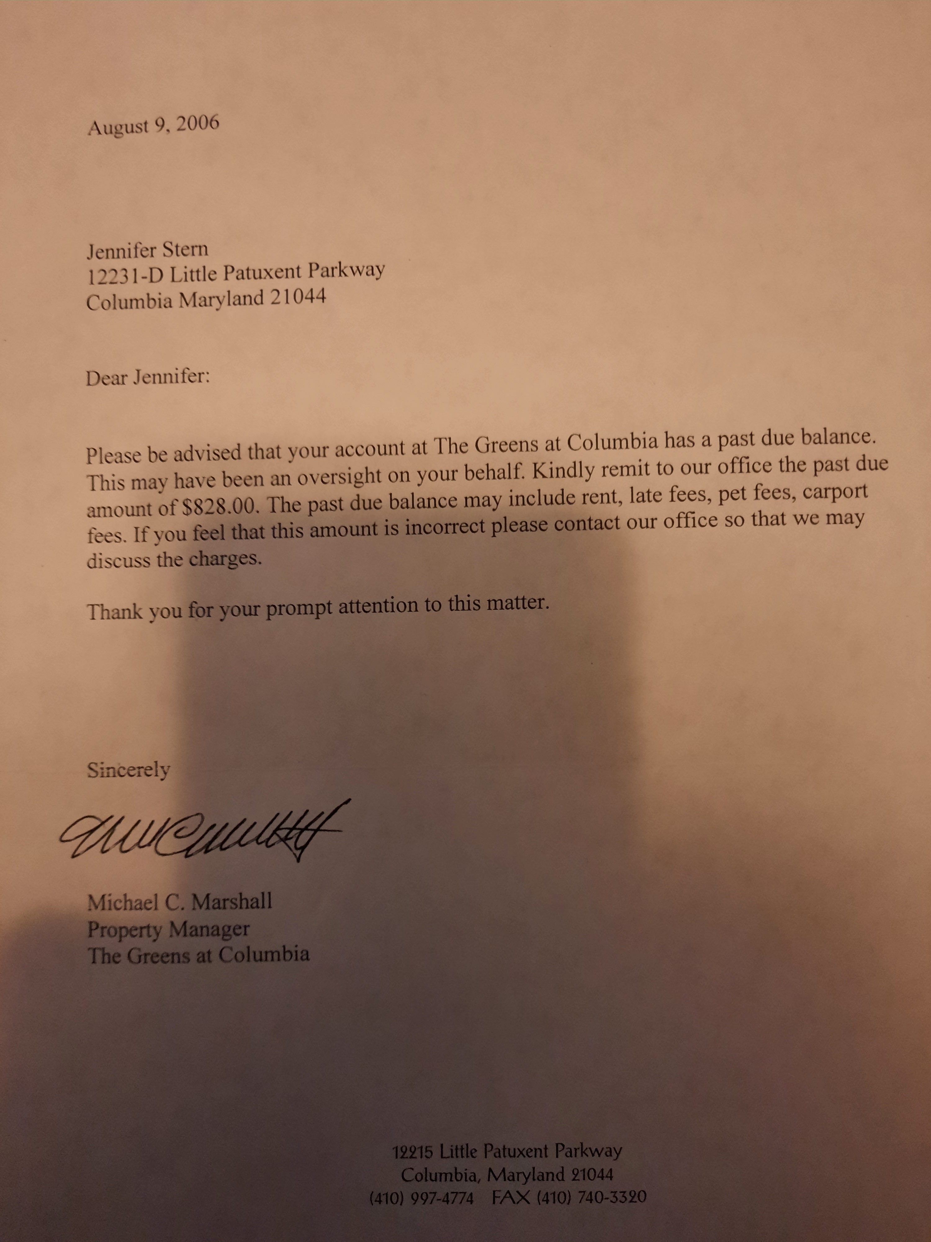 8/6/06 Demand from Property Manager for Rent due